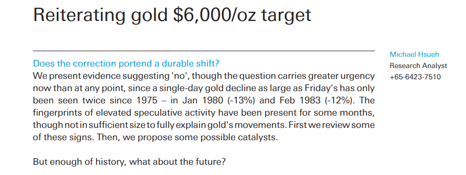 在华尔街眼中,黄金近期的剧烈调整更多是“技术性”而非“根本性”的。瑞银在最新报告中明确表示: