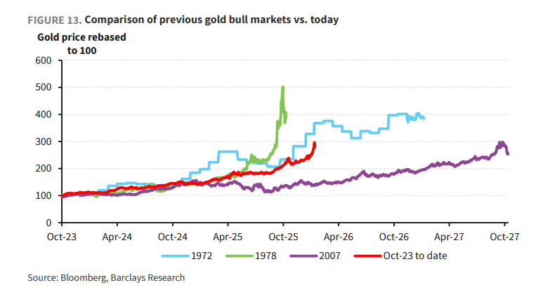 美联储换帅难改“通胀漂移”:尽管特朗普提名的美联储主席沃什被视为制度连贯性的象征,但巴克莱认为,政策波动带来的挑战不会很快消失。该行测算,美国CPI每上升1%,金价就有5%的内生上涨动力。在未来一年通胀预期3%的背景下,仅“通胀漂移”就能为金价带来15%的保底涨幅。