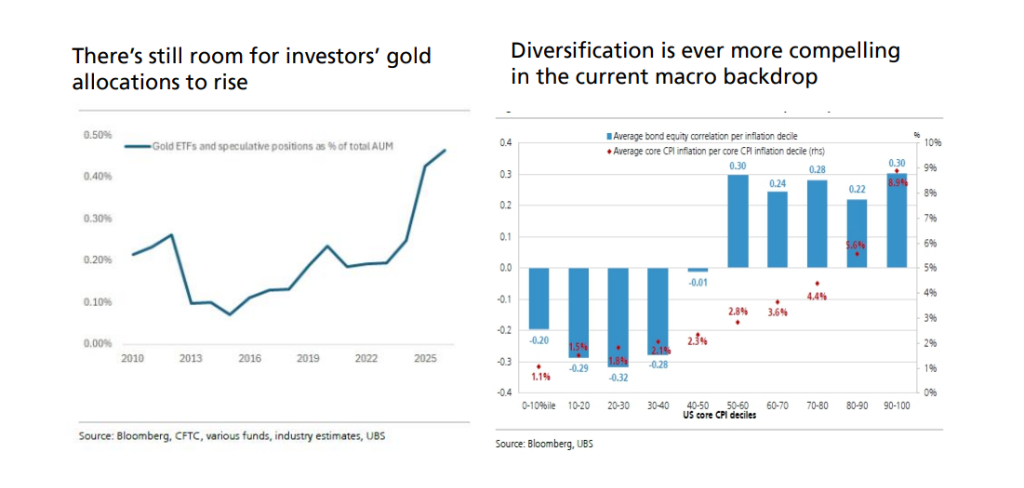 瑞银策略师Joni Teves指出,尽管金价经历了大幅波动,但大部分长期机构投资者的黄金配置仍处于较低水平。随着金价回落,这些尚未建仓或仓位不足的投资者将获得理想的入场点。