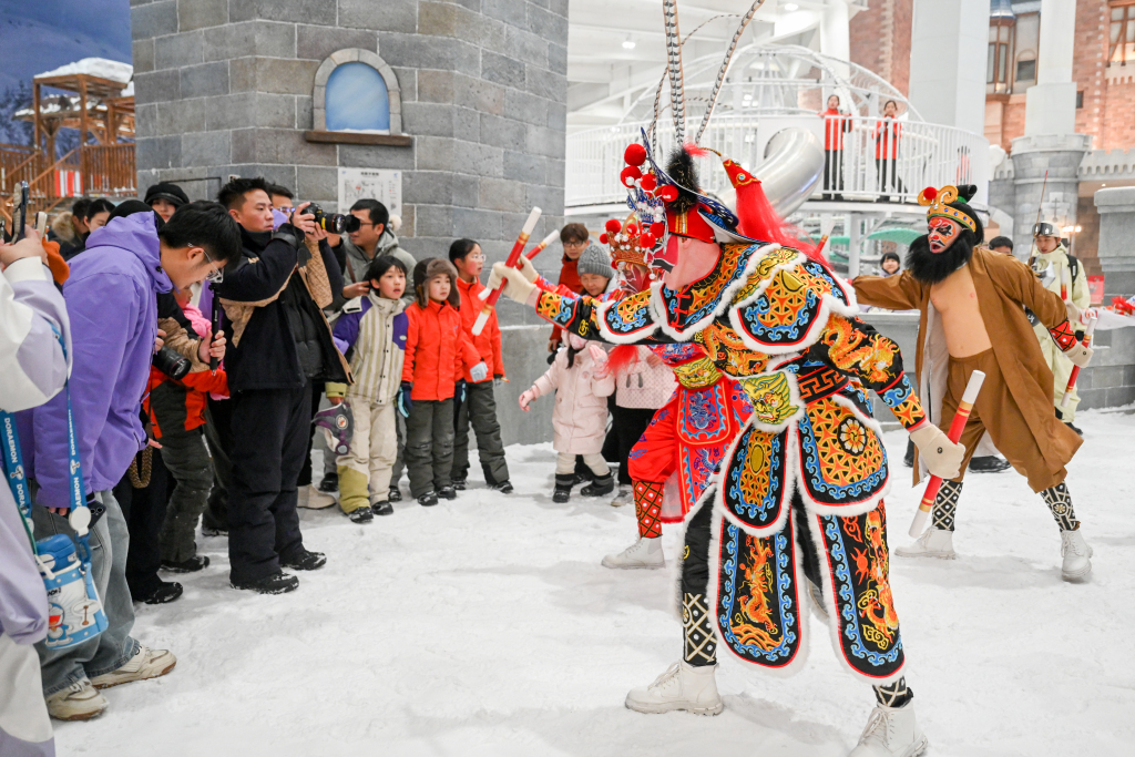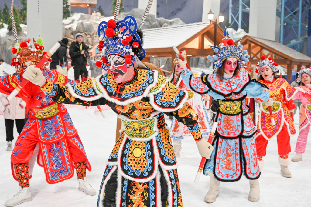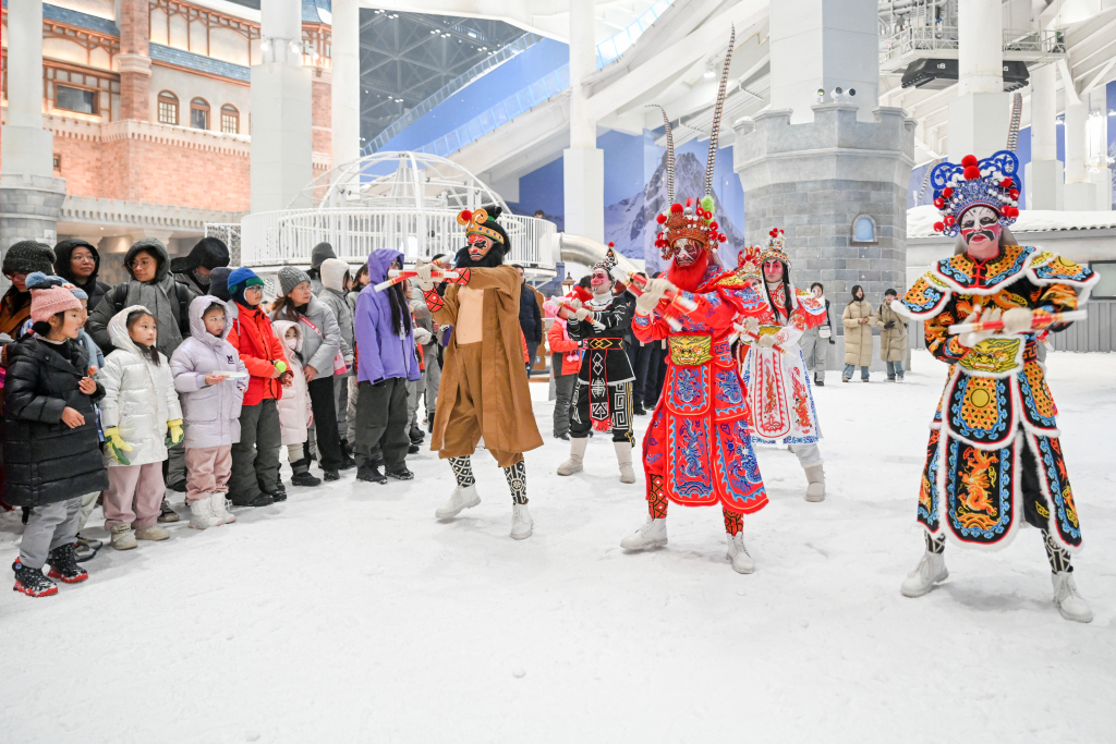 外籍演员首次演绎英歌舞,为游客打造“冰雪+非遗”的全天候演艺矩阵。耀雪冰雪世界特别邀请中国潮阳英歌研究院助力,与外籍舞蹈演员携手呈现“雪舞英歌”非遗演出,演员们用刚劲有力的舞姿展现出冰雪国潮的独特魅力,这也是全国首个由外籍演员诠释的英歌舞演出。同时,雪场还推出了奇幻雪境仙雾漫雪秀、滑雪舞龙舞狮、雪人军团狂欢电音节等丰富的演艺节目。