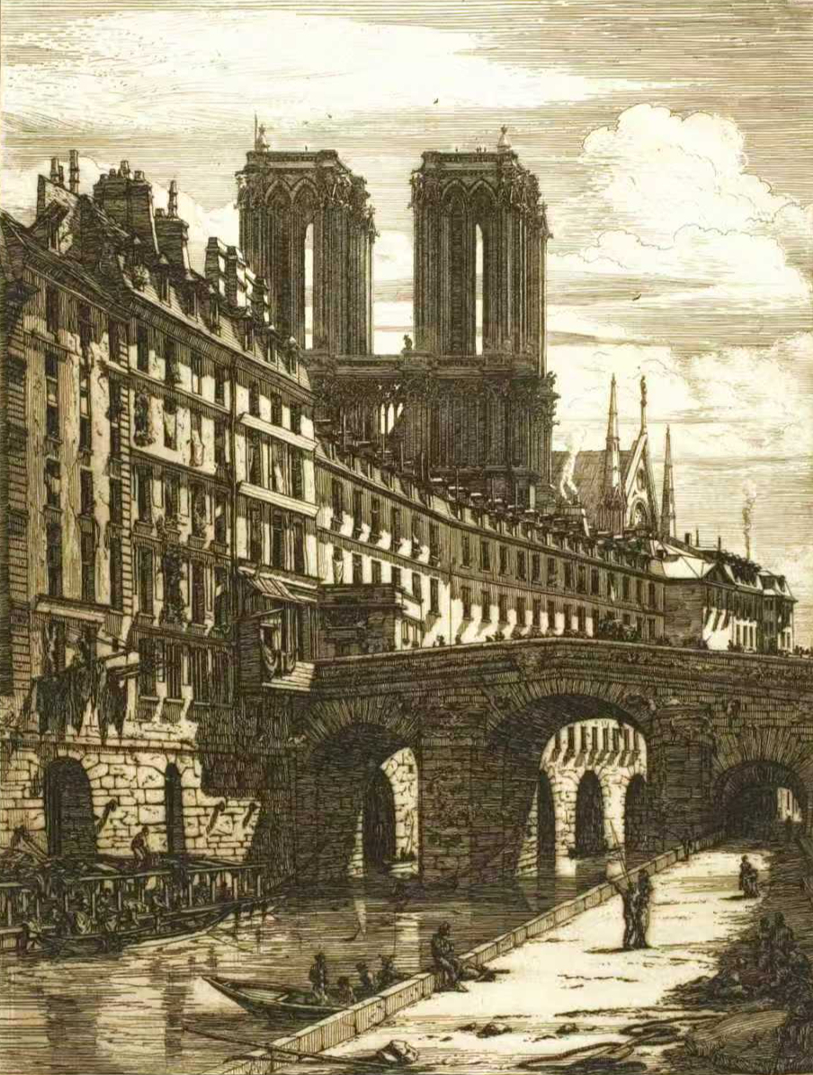 19世纪法国艺术家创作的关于巴黎小桥的版画