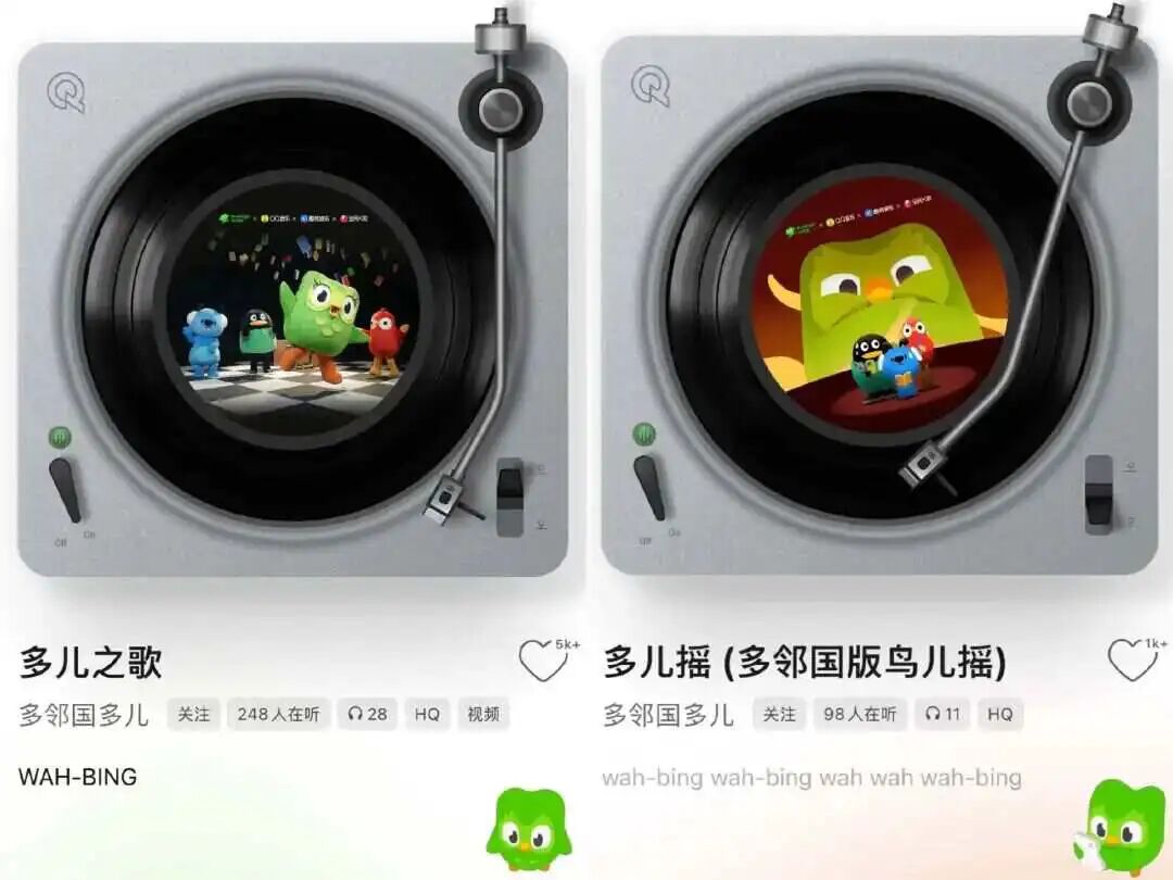 2025年,多邻国在中国市场和瑞幸、优酸乳、原神、影石360等品牌联动推出了不少合作产品。到了2026年,小绿鸟除了这次的周边,还在1月份官宣了和QQ音乐、酷狗音乐、全民K歌的大联动,官方称之为【音乐劝学计划】。