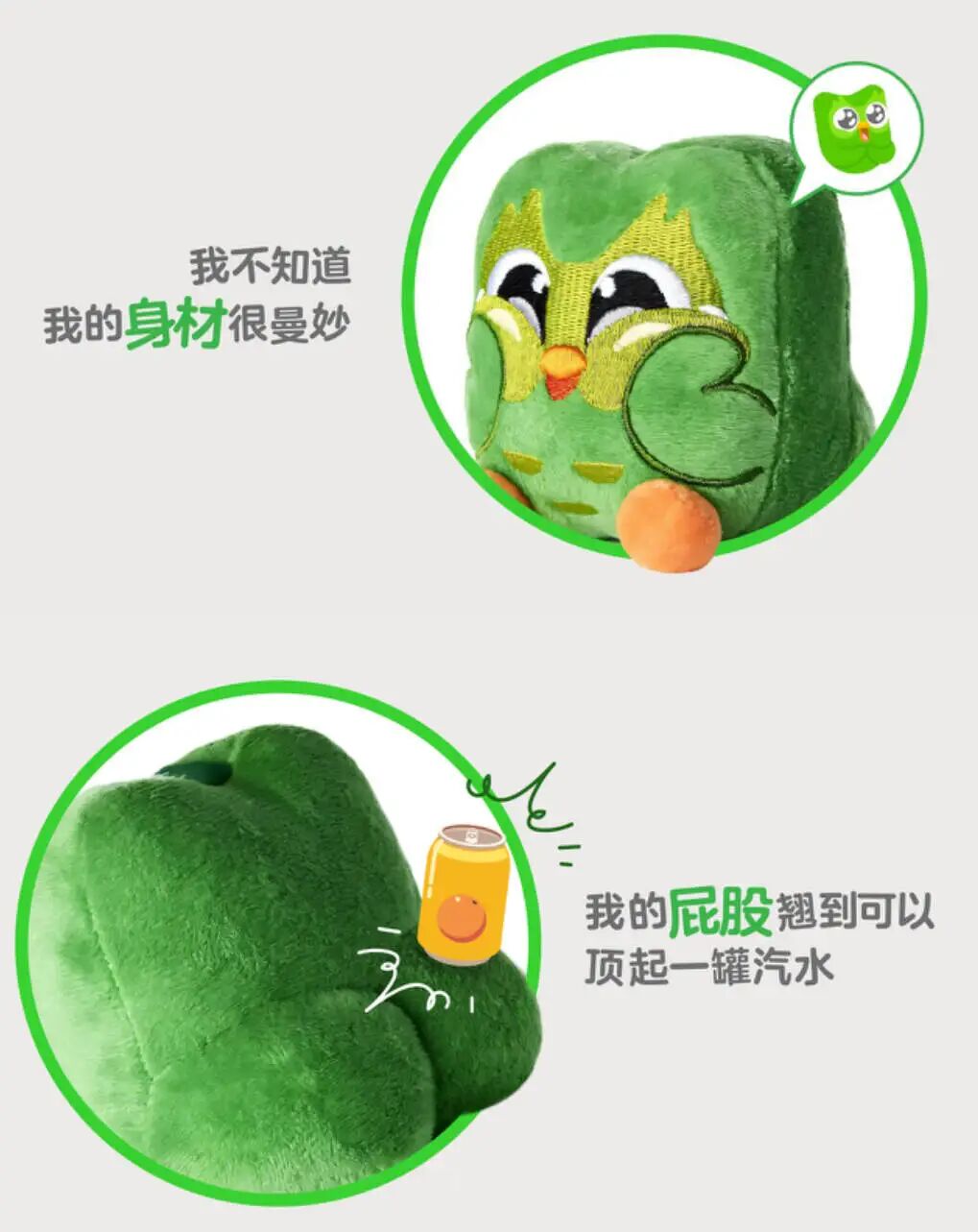 它完美复刻了多儿的小绿鸟形象,用官方的话说就是“前有萌脸,后有翘臀”。