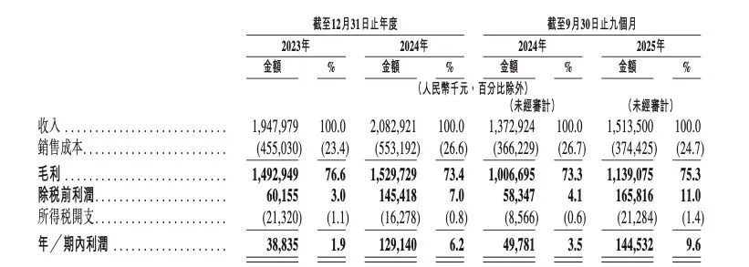 2023年、2024年及2025年前三季度,公司经调整净利润(非国际财务报告准则计量指标)分别为0.923亿元、1.294亿元及1.453亿元,同期经调整净利润率(非国际财务报告准则计量指标)分别为4.7%、6.2%及9.6%。
