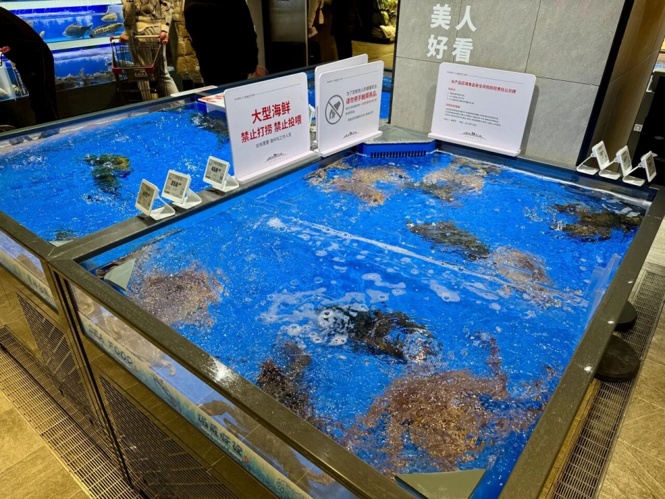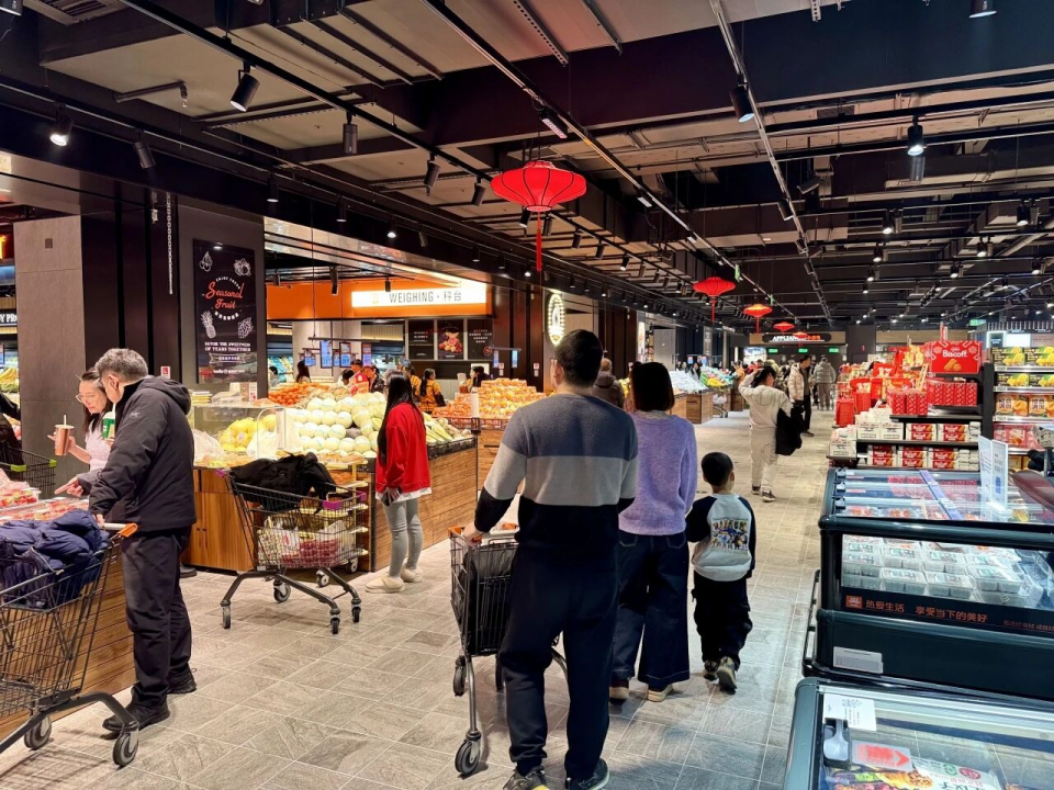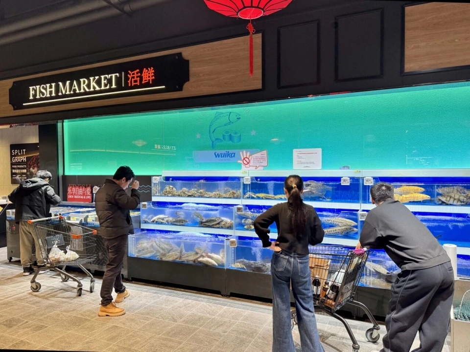 便民服务设施进一步完善,入口处的顾客休息区配备了洗手池、便民医疗箱、免费直饮水、体脂秤、一次性吸管叉子、充电宝等,让采购累了的市民能随时歇脚;宠物寄存处与母婴室,解决了家庭购物的后顾之忧;海鲜区提供免费清洗、剖鱼、去虾线服务,鲜味厨房还能根据顾客需求现场加工海鲜,让市民轻松搞定团圆宴硬菜。