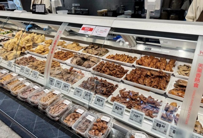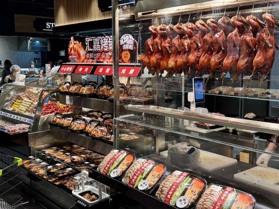熟食区中,所有食品当日制作、当日售罄,小龙虾、卤猪蹄、甜皮鸭等传统年味儿美食香气扑鼻,胖老汉椒麻鸡、天莱香卤牛肺等“疆味”特产一应俱全,满足了本地家庭团圆宴的需求;