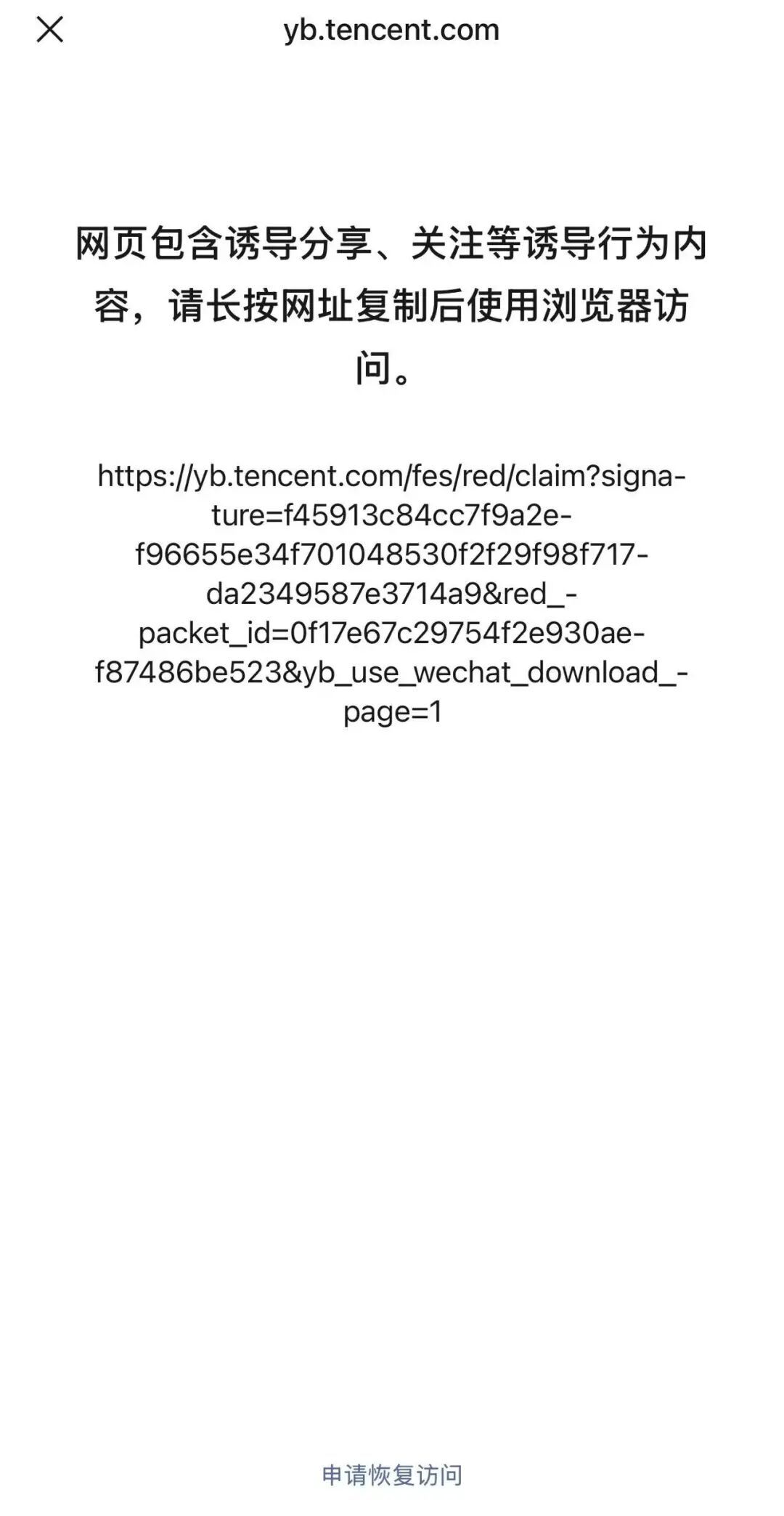 如今,不少用户发现微信群里的元宝红包链接已无法正常打开。
