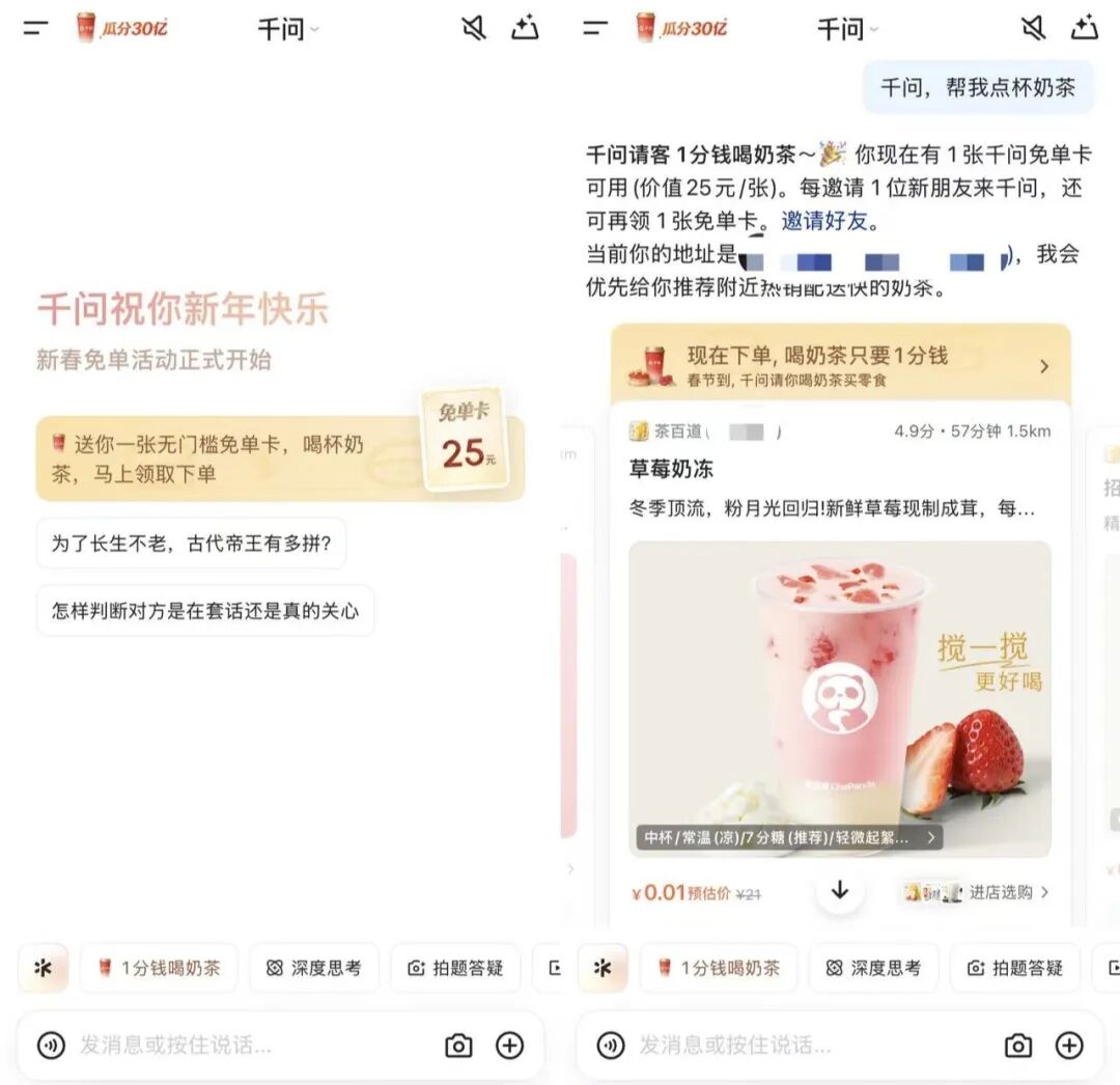 形式上,千问也用了红包、免单等激励方式,但其目的与其他产品本质不同。