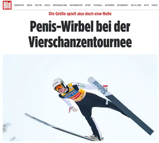 起初,此事仅在德语地区引发讨论,但随着英美媒体的参与,话题逐渐变得离奇。由于这种作弊手法较为私密,一些主流媒体在报道中引用了“科学数据”,比如一项研究显示,紧身衣周长每增加2厘米,阻力会减少4%,升力增加5%,据称这能让跳跃距离额外增加5.8米。