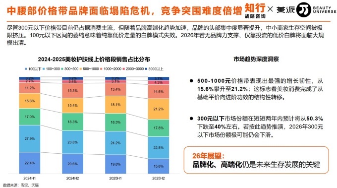近期,知行战略咨询联合美π发布的《2025美妆护肤行业年度洞察报告》,其价值不仅在于及时指出“70%流量双雄格局”这一结构性特征,更在于:第一,进行跨平台的深度数据分析,揭示同一品类在不同渠道的增长逻辑和竞争生态差异;第二,前瞻性地识别出如青少年护肤、妆械结合等已被市场验证的增长赛道;第三,提供渠道适配的策略框架,帮助品牌判断自身在各渠道中的定位和机会。