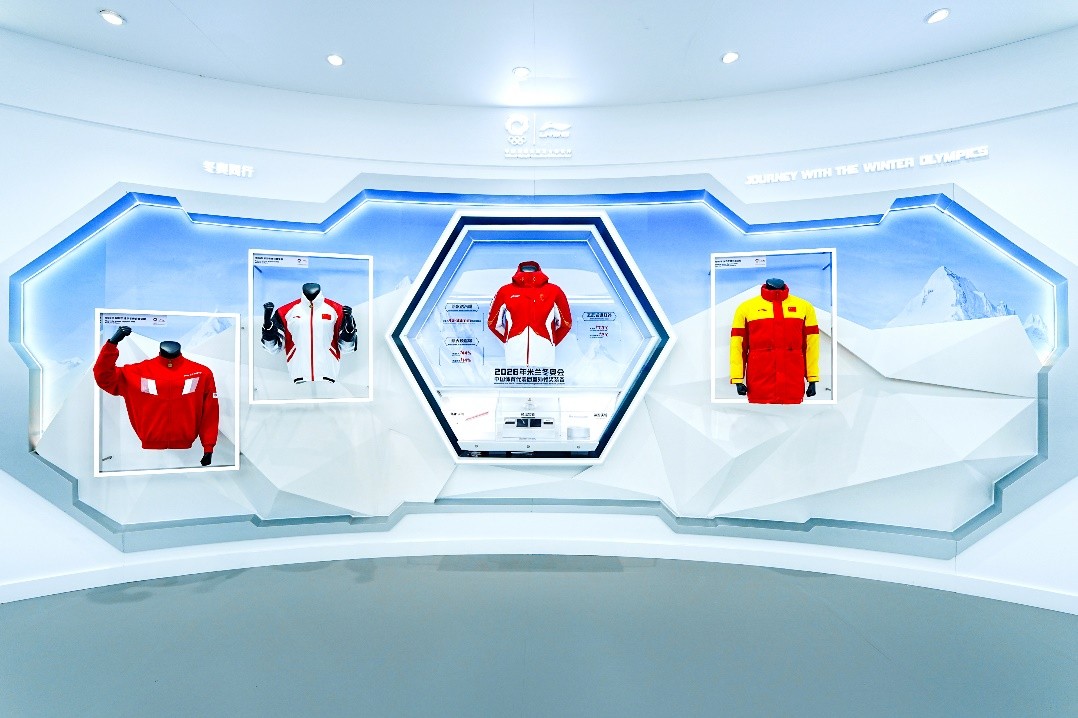 “中国荣耀”展区采用矩阵式陈列,展示了2026年米兰冬奥会中国体育代表团的室外领奖装备、室内领奖装备及出场装备。“冬奥同行”展区则呈现了李宁品牌自1992年起助力中国体育代表团征战世界顶级冰雪赛场的专业运动装备,包括1992年阿尔贝维尔冬奥会、1998年长野冬奥会的领奖服与出场服,以及2026年米兰冬奥会的室外领奖服,清晰展现领奖装备的科技迭代之路,既体现了李宁品牌与中国体育相伴四十载的发展历程,也集中呈现了三十余年来中国体育代表团专业运动装备的进化轨迹,更彰显了中国冰雪健儿在世界舞台不断突破的征程。