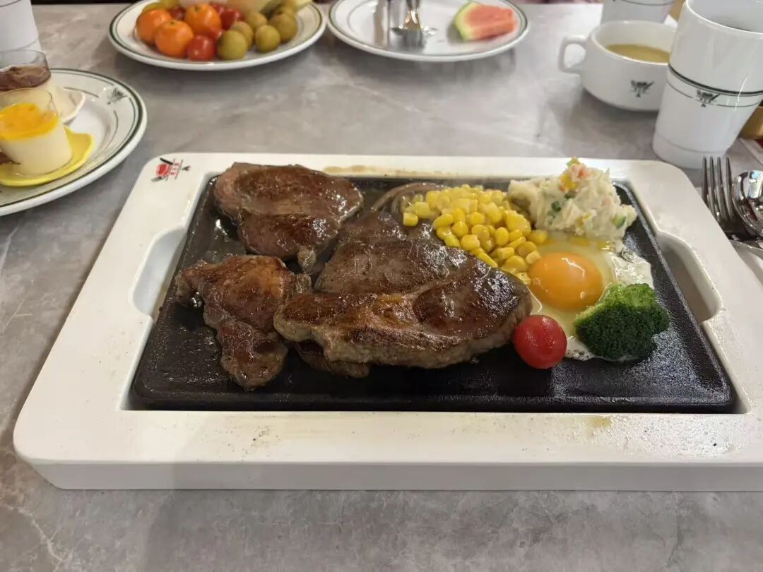 台式牛排起源于1976年台北夜市,曾让精英消费的牛排走向平价。铁板滋滋作响的烟火气,让食客享受大口吃肉、酱汁淋漓的满足感;用铁板余温煎半熟蛋、拌铁板面,是其独有的市井风味。