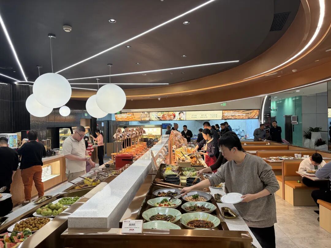 门店80%菜品由明档现制,通过现点现做、顾客自取、推车巡游等方式,营造烟火气与流动盛宴般的仪式感。