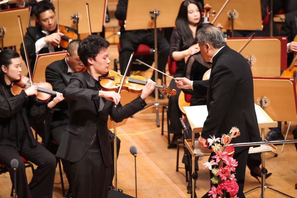 在帕格尼尼小提琴比赛中夺冠后,上海音乐学院附中学生章奥哲备受关注。他在音乐会上带来了陈钢作曲的《阳光照耀着塔什库尔干》,以及克莱斯勒受旧金山唐人街中国移民表演启发而创作的《中国花鼓》。