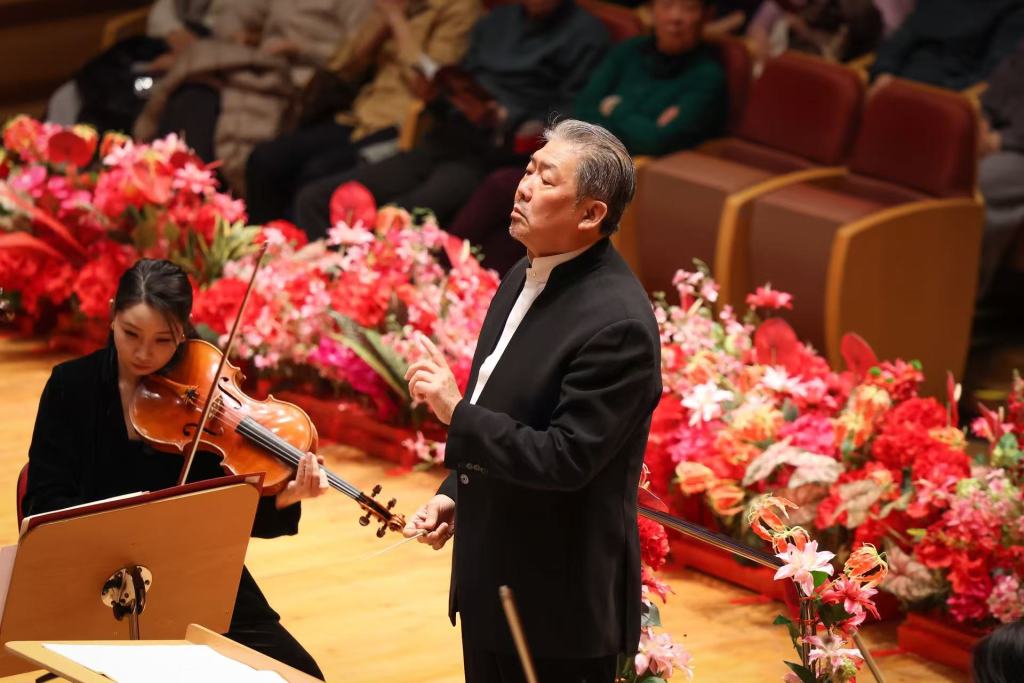 从春节必备曲目《春节序曲》,到充满生活气息的《中国厨房》,再到《中国花鼓》《红梅随想曲》《阳光照耀着塔什库尔干》《水调歌头·明月几时有》,现场每一首乐曲都如同新春餐桌上的特色佳肴,满溢着浓郁的“中国味”。