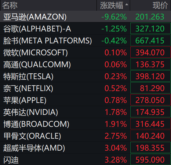 亚马逊则是开盘大幅下跌9%,盘初跌幅一度扩大至10%,创下2024年8月以来的最大跌幅。从消息层面分析,亚马逊预计2026年的资本支出(CapEx)可能达到2000亿美元,这一巨额支出计划引发了市场对于公司未来盈利预期的担忧。