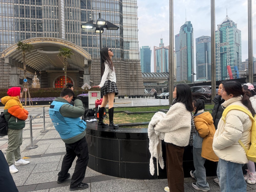 2月10日,金茂大厦门口聚集着不少拍照打卡的游客。本文图片均由澎湃新闻记者 邹娟 摄