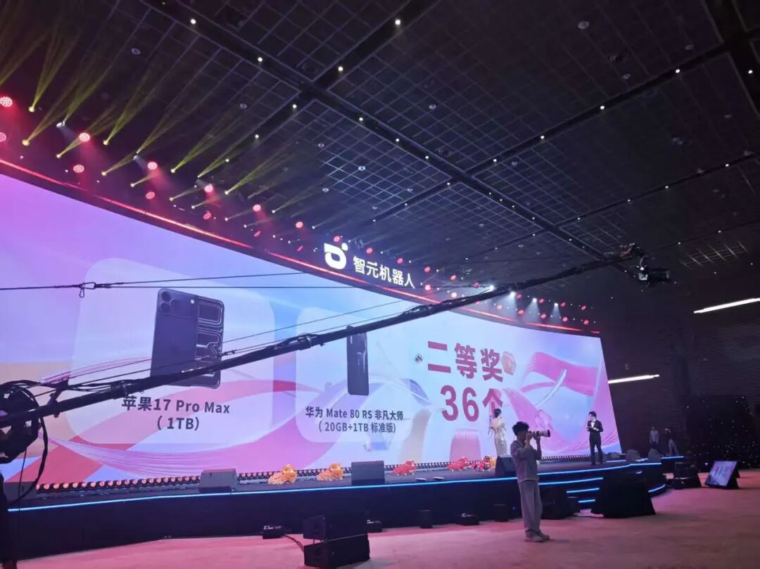 智元此次年会规模较大,抽奖环节设16个一等奖(MacBook Pro)、36个二等奖(iPhone 17 Pro Max)、66个三等奖(含苹果Watch Ultra 3、大疆无人机、周大福金项链等),奖品总价值约一两百万元。被让出的MG4汽车将通过原B站渠道重新抽取,结果会在官方社交媒体公示。