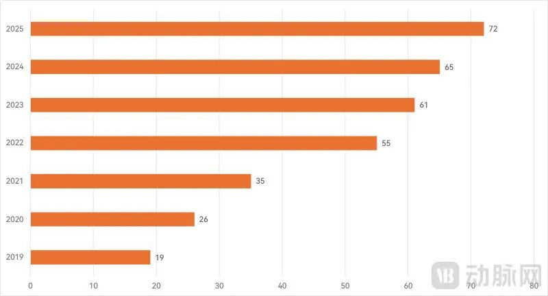 进入特别审批程序只是第一步,产品需正式获批才能商业化。2025年国内通过该程序获批的创新医疗器械达72款,创历年新高;自2019年起,获批数量已连续7年增长。
