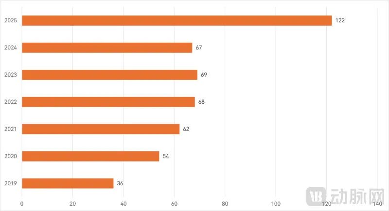 公开信息显示,2025年国家药监局公告进入创新医疗器械特别审查程序的产品达122款,首次突破百款,较2024年近乎翻倍,是2019年新版《创新医疗器械特别审查程序》实施以来增长最快的一年。