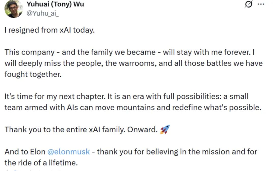 48小时内xAI两位联合创始人接连离职
