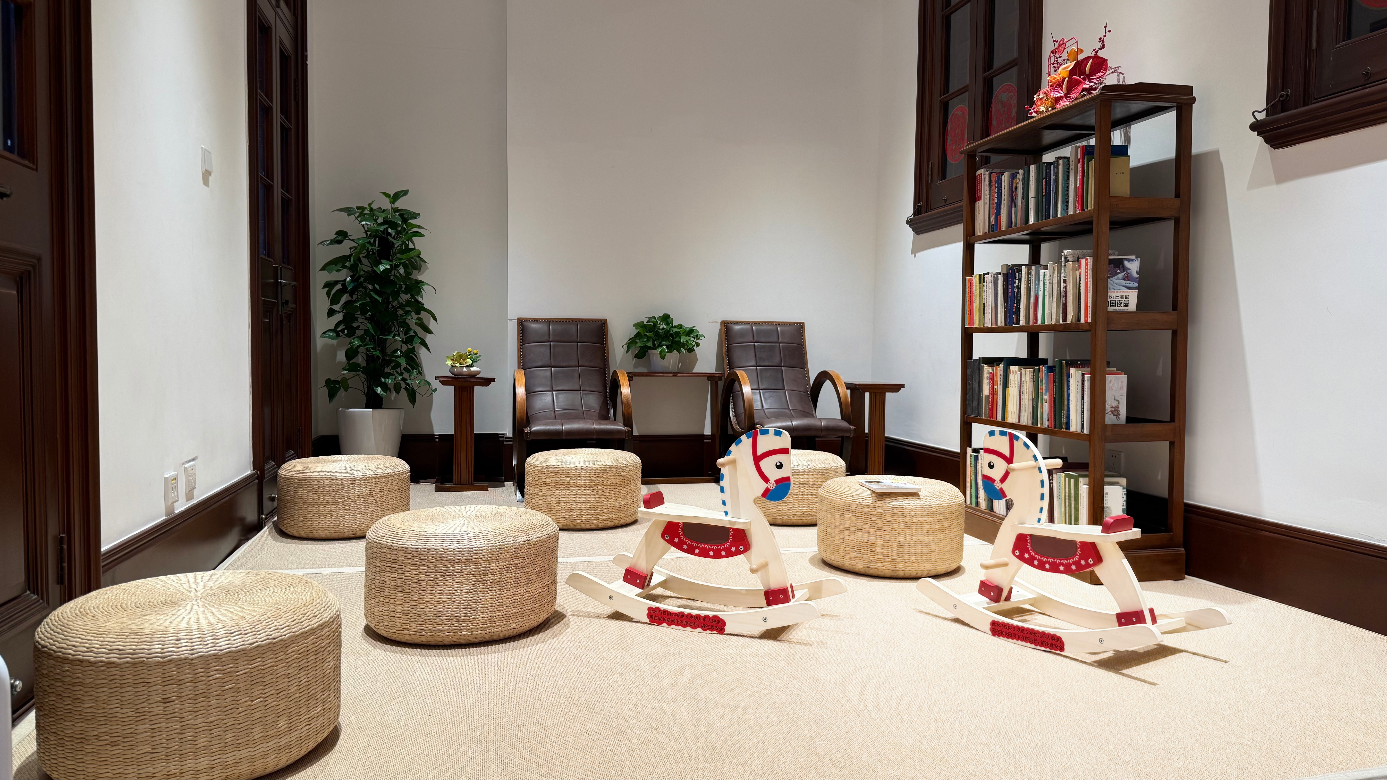 据澎湃新闻记者获悉,2026年春节假期,巴金图书馆将通过红包印制、纪录片看片会、非遗展演等丰富活动及特色礼品,迎接八方读者。馆内草坪上散落的大红装饰“珠”、天井处质朴的马年墙贴、憩园独享区可爱的摇摇马、二楼春节主题打卡墙等布置,营造出浓厚的新春氛围。