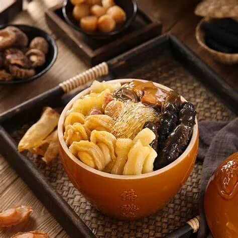 而广东人爱吃的梅菜扣肉(509大卡/100克)、腊肉香肠(500-700大卡/100克)……饭后一个蛋挞(约400大卡),热量又超标了。福建的八宝饭、年糕、发糕、粿条,再加上一瓮佛跳墙(超4400大卡),热量更是惊人。