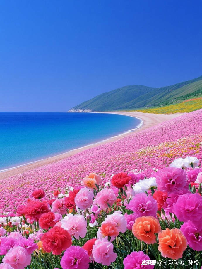 在这片海与花的天地里,大海的豪放和花丛的婉约相互融合,构成了一幅美丽和谐的画卷。它们用自己的方式诠释生命的意义,告诉我们,无论生活中遇到多少风雨挑战,都要像大海一样勇敢奔放,像花朵一样坚韧顽强,在岁月长河里绽放属于自己的光彩。