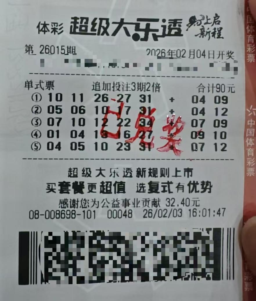 2月9日,超级大乐透第26017期开奖结果揭晓。前区号码为04、05、10、23、31,后区号码是07、12。本期上海彩民收获颇丰,共中得3注一等奖,其中2注为追加一等奖,1注为基础一等奖。2注追加一等奖出自普陀区祁顺路1351号的08698体彩代销网点,单票奖金高达2535万余元;另一注基础一等奖则来自闵行区顾戴路1178弄61号的09335体彩代销网点,单票奖金为704万余元。两位幸运的中奖者都选择在2月11日来到兑奖大厅,完成了领奖手续。