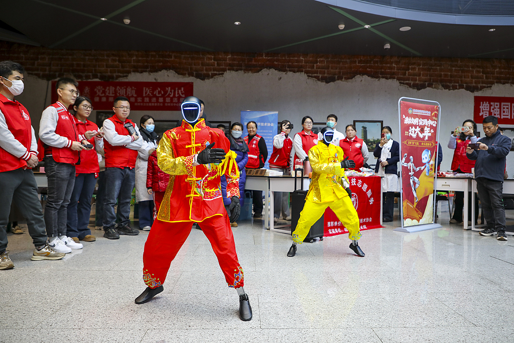 2月10日,郑州地铁绿城广场站的文明“郑”实践活动中,人形机器人表演节目。