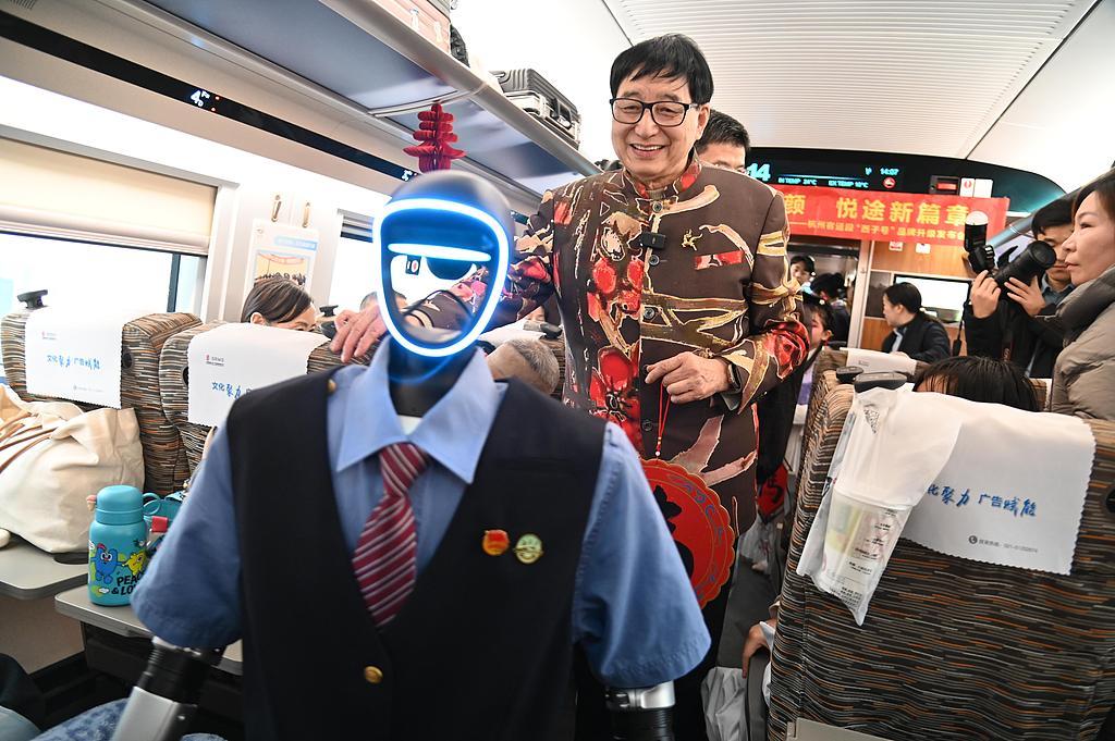 2月1日,“西子号”G41次列车迎来宇树科技的机器人编外“乘务员”。