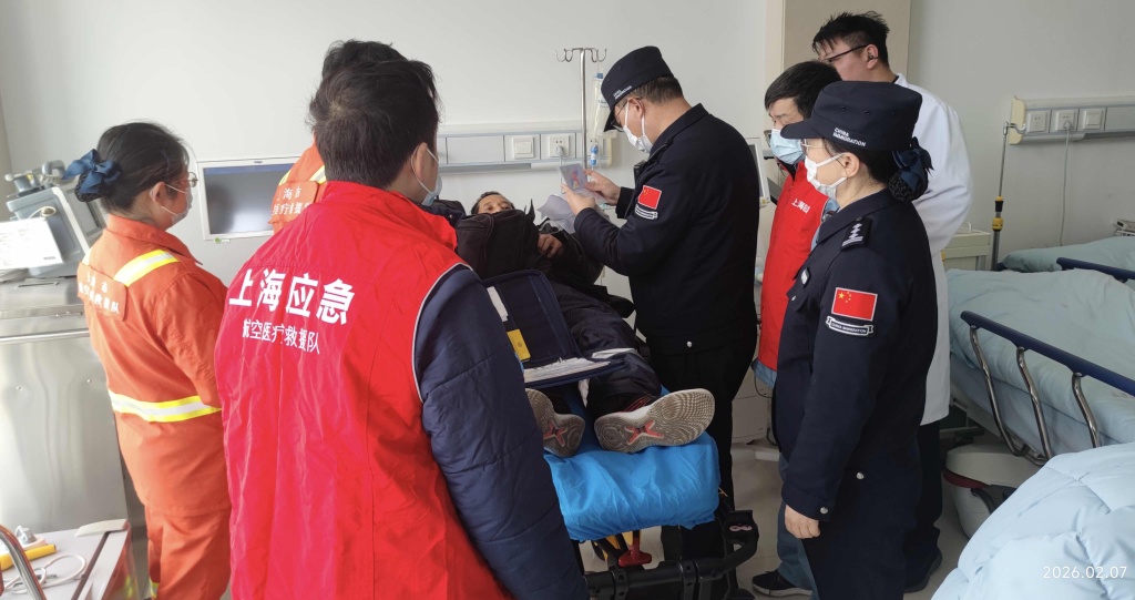 2月11日,澎湃新闻记者从上海边检部门了解到,近日一架救助直升机平稳降落在瑞金医院停机坪,一名突发疾病的外籍海员从海上被直接送至医院抢救室,完成了“从海上直达抢救室”的极速救援。这一事件标志着上海首个出入境人员海空生命接力救助通道正式投入使用,由上海边检总站牵头,联合上海海关、海事、东海救助局等4家涉海单位以及瑞金医院建立的“4+1”应急救助机制已全面落地运行。