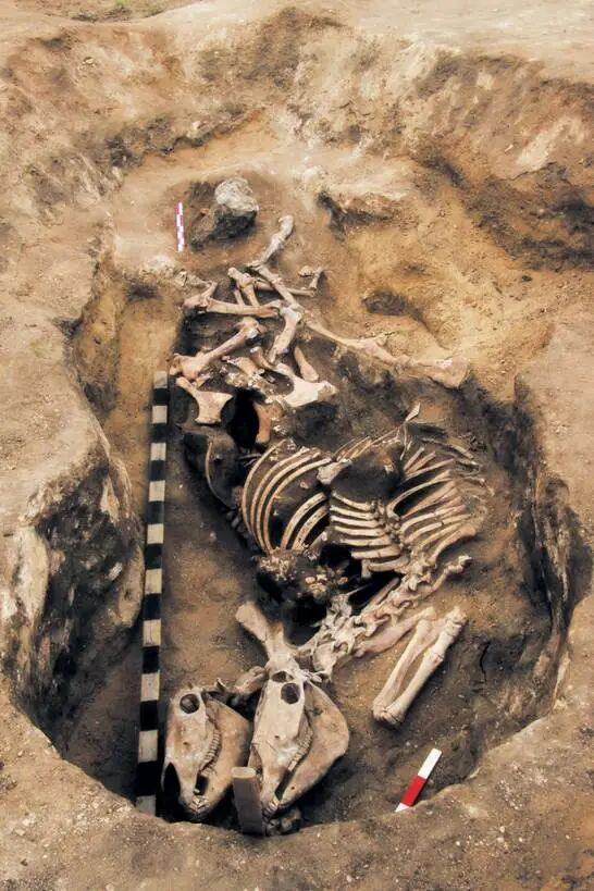 20世纪90年代,考古学有突破性进展。纽约哈特威克学院考古学家大卫・安东尼及其同事发现马遗骸中的“衔铁磨损”——使用金属衔铁骑乘的马匹下颌第二前臼齿的损伤,在乌克兰德里耶夫卡遗址(颜那亚文化所在地)的马遗骸上发现该痕迹,推测欧亚草原牧马人可能早在公元前4千年甚至更早饲养和骑乘马匹。这似乎串联起古代欧亚大陆的认知:约6000年前铜石并用时代,“库尔干”墓葬土墩广泛出现,学者推测其与印欧语言传播、马匹驯化有关,提出“库尔干假说”。但十年后对德里耶夫卡马遗骸的碳测年显示,其生存年代远晚于推测,实际在公元前1千年早期,彼时家养马匹和骑马行为已广泛存在。