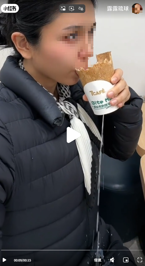 比如小红书用户“露露琉球”分享的一条视频里,该用户因为咬了一口杯身的饼干,导致杯中的鲜奶洒在了身上。也有网友表示,轻轻咬一口都怕整个杯子裂开。