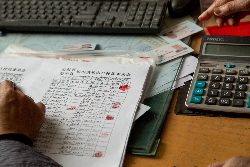 2016年春节前,山东耿山口村,耿庆文的妻子在准备过年的年糕。