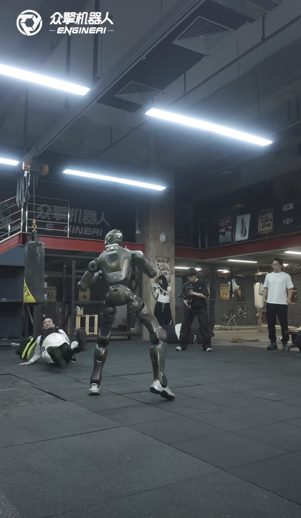 众擎T800机器人将赵同阳踹倒在地