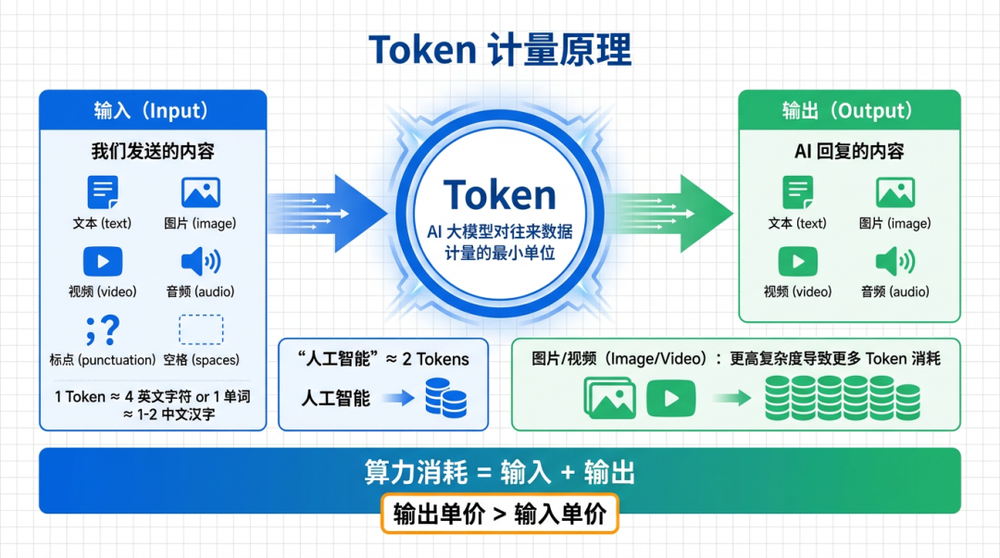我们常说的算力消耗,就是输入与输出Token的总和。
