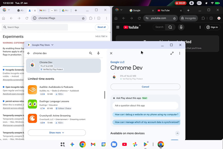 这意味着新系统将采用Android的Linux内核分支、系统框架及应用运行环境。Google工程师正把ChromeOS优秀的桌面级窗口管理、任务栏逻辑及全功能桌面版Chrome浏览器,以系统级组件形式“嫁接”到全新Android底座上。