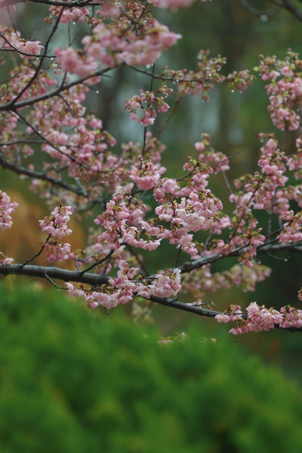2月24日,顾村公园雨中的樱花。园方供图