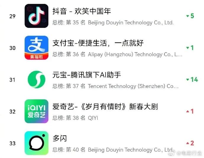 相比之下,腾讯元宝的春节表现似乎稍显逊色。
