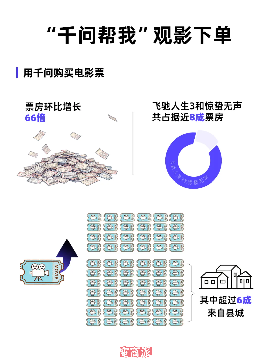 除此之外,有1.3亿人首次体验了AI购物,下沉市场的订单占比接近一半,电影票订单环比更是增长了372倍……