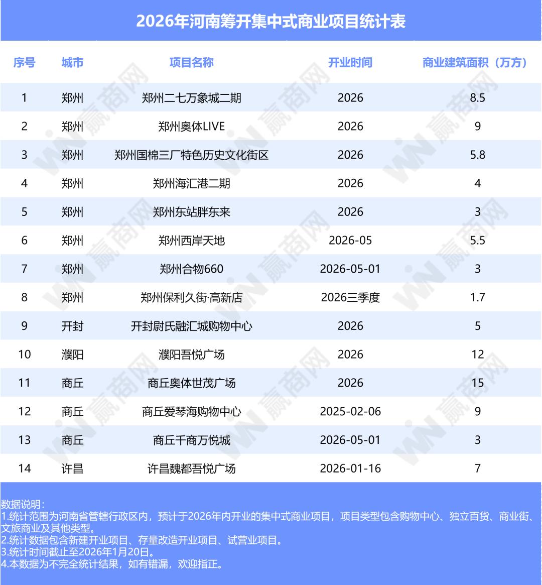 2026年河南将新开14个商业项目 郑州占8个 新增商业体量超91万方