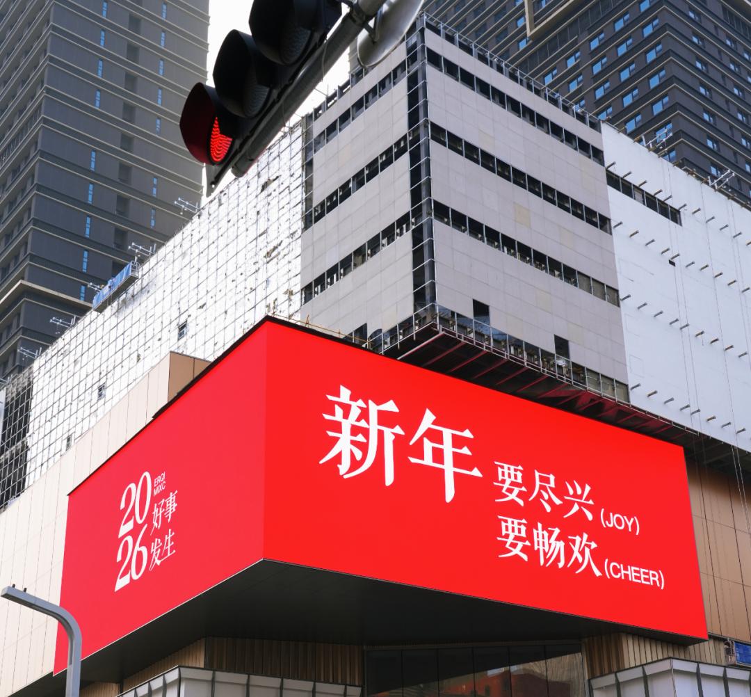 借助二七广场的区位优势,项目享有地铁1/3号线直达的便利。项目从品牌、活动和空间三个维度深化“潮趣生活引力场”的定位,成为城市商业新地标。根据市场观察,二期项目预计在今年下半年开业。从一期连廊的“2026好事发生”预告,到提前点亮二期外立面部分LED大屏画面,流动的“新春祝福”与“好事发生”字样相互映衬,既传递了对即将到来的农历新年的美好祝愿,也巧妙呼应了项目2026年的发展愿景,期待二七万象城重新塑造商业新地标。