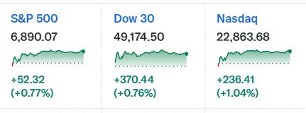 AMD上涨约9%,主要因 Meta 宣布双方达成大规模 AI 芯片采购协议。据多家媒体报道,该合作将覆盖未来多年、总量达约 6 GW 的 AMD Instinct 系列 GPU 供应,并可能使交易总额超过百亿美元级别。