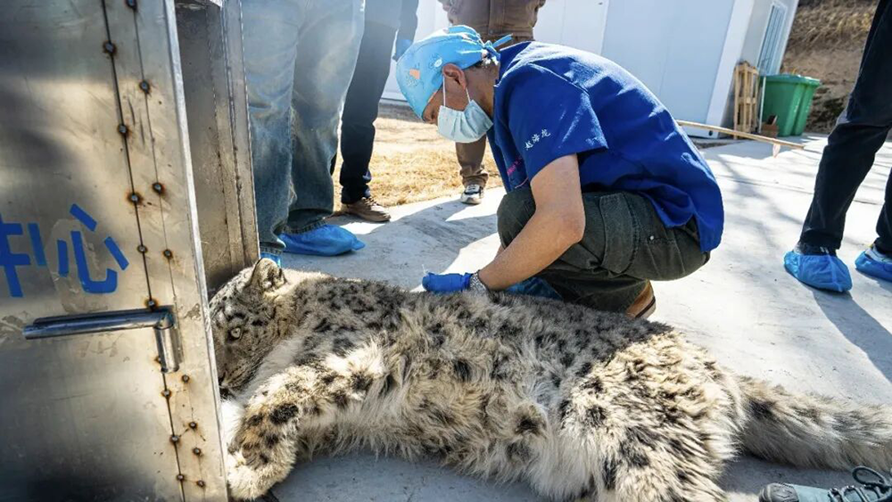 当天10时左右,中心兽医团队发现了这只雪豹,随即联合相关机构团队展开跟踪,寻找麻醉时机;11时55分,成功对雪豹实施麻醉。初步检查表明,这是一只年轻的雄性雪豹,随后被安全转移至青海省野生动物救护繁育中心接受全面体检和专业治疗。