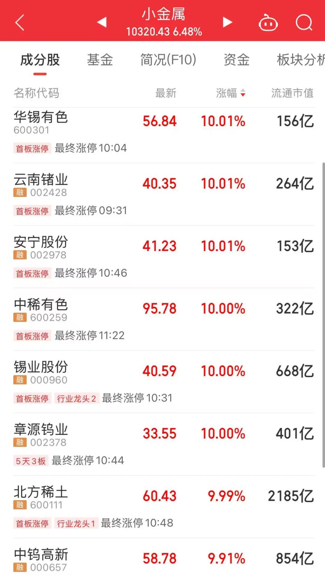 有色金属板块中,小金属、能源金属、工业金属等细分板块涨幅明显。