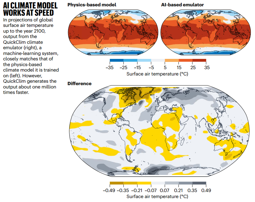 气候变化刻不容缓,传统模型的缓慢运算实际上是在浪费应对气候变化的时间。这张图告诉我们:AI并非来“抢饭碗”,而是来“搭快车”——它让气候预测从少数超级计算机的专利,转变为人人可用的工具,帮助政策制定者更快找到最优解,让我们更早做好防灾准备。