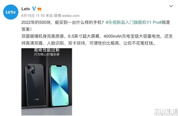 2022年6月,三易生活“评测”未发布的“乐Turbo X950”时,曾批判乐视手机当时主推的“入门旗舰”Y1 Pro。