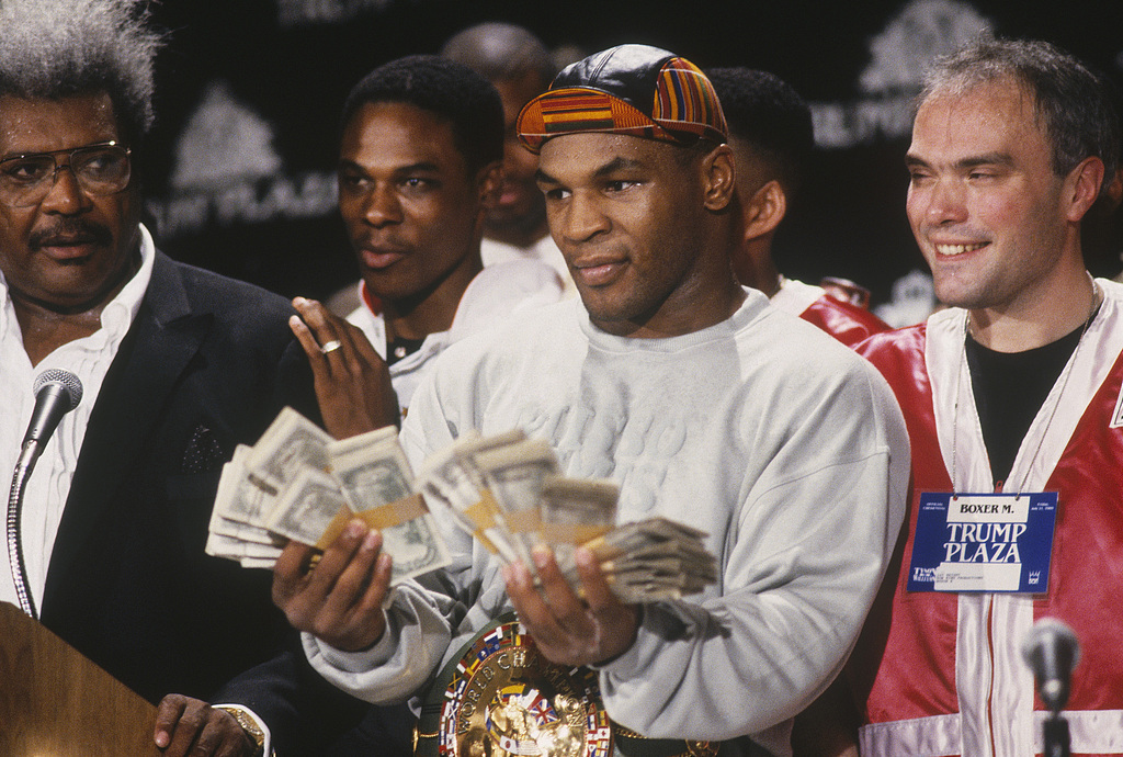 今年4月与梅威瑟对阵的泰森,就是此前最大的金融欺诈受害者。当年泰森指认经纪人唐金骗走他超1亿美元收入(这还是近30年前的金额),他曾怒揍唐金,却无济于事。