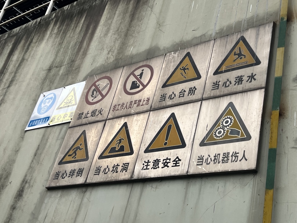 2025年12月19日上午,徐泾污水厂污水处理设施上的警示牌。王昀 图